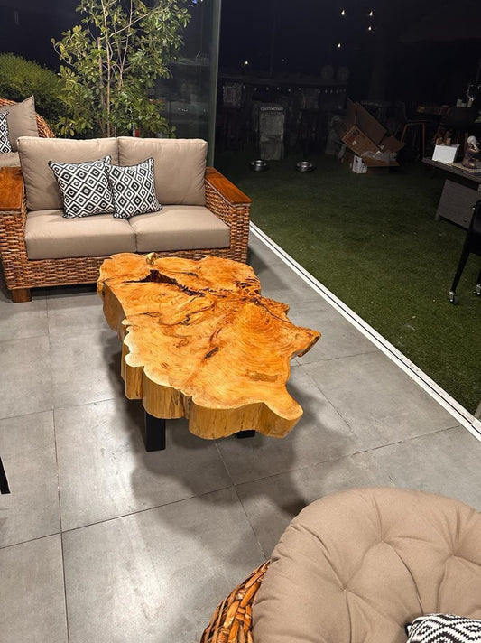 Cada cubiera, tablón y parte del mueble de madera despliega hermosos patrones, producto de la larga y única vida de cada árbol de Ciprés Macrocarpa.